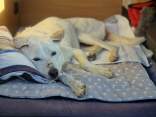 Der Rüde "Kalokairi", sein Name bedeutet "Sommer", wurde im November 2010 in Sitia/Kreta geboren und kam im Alter von ca. 10 Monaten zu uns. Tierschützer auf Kreta hatten ihn nach einer schweren Verletzung gesund gepflegt. Eigentlich wollten wir nur Pflegestelle für Kalli sein, aber er fügte sich so gut in unser bestehendes Rudel ein und bezauberte uns mit seinem Charme, also blieb er bei uns. Er hat Agility ohne Turnierambitionen und Tricktraining gemacht. Höchste Motivation zeigte er beim Mantrailing, war als Sporttrailer Weiß B geprüft. Im April 2017 haben wir Kalokairi auf der Windhund-Zuchtschau auf Gut Basthorst zur Phänotypbestimmung den Richtern des Deutschen Windhundzucht- und Rennverbandes DWZRV (VDH) vorgestellt. So wurde er als erster Hund der Rasse Kritikos Lagonikos in das Register-Zuchbuch des DWZRV eingetragen, unter der Zuchtbuchnummer KL Reg.0-0001 . Leider ist unser Kalli am 17. Oktober 2025 von uns gegangen, in seinem 16. Lebensjahr...