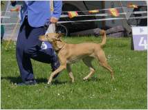 In diesem Jahr fand die Jahresausstellung der mediterranen Rassen auf der Windhundrennbahn in Greppin statt. Bei einer Meldezahl von 28 Hunden waren, mit Ausnahme des Podengo Portugues, alle Rassen der vom DWRV betreuten Rassen der Gruppe 5 vertreten. Der sympathische und humorvolle Zuchtrichter Jan Coppens aus den Niederlanden nahm die Bewertung der ausgestellten Hunde mit großer Sorgfalt und viel Einfühlungsvermögen vor und offenbarte großes Interesse und Sachkenntnis auch beim Kritikos Lagonikos. Er ließ es sich im Ehrenring nicht nehmen, das Publikum über die Herkunft und die Besonderheiten dieser Rasse zu infomieren.
