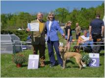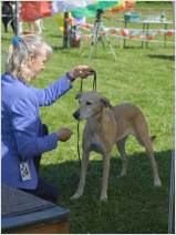 In diesem Jahr fand die Jahresausstellung der mediterranen Rassen auf der Windhundrennbahn in Greppin statt. Bei einer Meldezahl von 28 Hunden waren, mit Ausnahme des Podengo Portugues, alle Rassen der vom DWRV betreuten Rassen der Gruppe 5 vertreten. Der sympathische und humorvolle Zuchtrichter Jan Coppens aus den Niederlanden nahm die Bewertung der ausgestellten Hunde mit großer Sorgfalt und viel Einfühlungsvermögen vor und offenbarte großes Interesse und Sachkenntnis auch beim Kritikos Lagonikos. Er ließ es sich im Ehrenring nicht nehmen, das Publikum über die Herkunft und die Besonderheiten dieser Rasse zu infomieren.